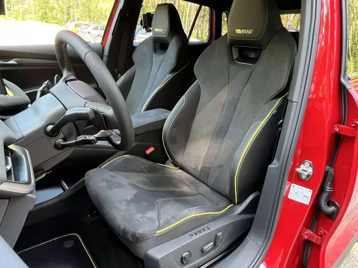 Sisätilat ovat korin pituuteen nähden yllättävän väljät, kiitos sähkötekniikan kompaktin sijoittelun. Tavaratilaa on 470 litraa ja peräkärryäkin voi vetää 1 200 kilogrammaan asti. Kuljettajan paikalla istutaan mukavasti RS-mallille ominaisissa sporttipenkeissä, joissa on hierontatoiminto ja sähkösäädöt.