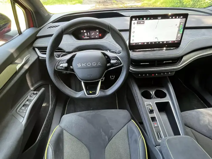 Vaikka Elroq RS painaa noin 2,2 tonnia, se tuntuu yllättävän ketterältä. Alle 4,5-metrisenä autona se kääntyy näppärästi, ja DCC-mukautuva alusta tekee ajokokemuksesta miellyttävän. Kuljettaja voi säätää iskunvaimennusta jämäkämmästä mukavampaan kosketusnäytöltä.