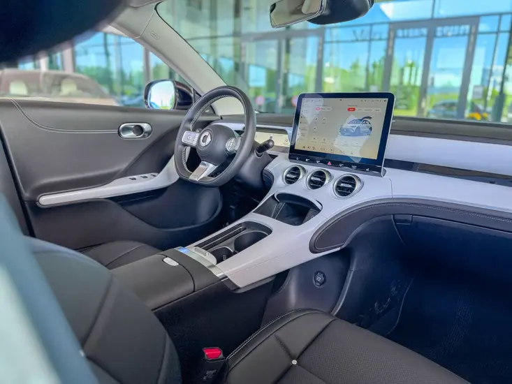 Kolmos-Smartin kiinalaiset juuret näkyvät selvästi. Auton kiekkomainen avain on valkoista muovia ja hieman lelumainen. Sama leikkisyys jatkuu mittaristossa ja käyttöjärjestelmässä, joissa pastellisävyt ja aasialaistyylinen grafiikka ovat vahvasti läsnä. Vaikka ulkonäkö on makuasia, selkeämpi suunnittelukieli olisi voinut toimia paremmin.