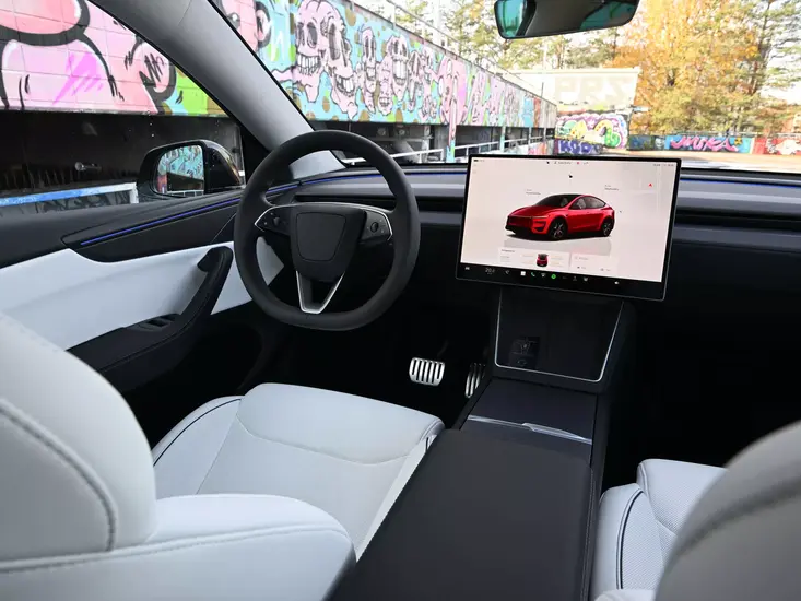 Teslan mallisto on saanut keväällä 2024 Juniper-päivityksen, jonka myötä Model Y:n ulkonäköä on hieman terävöitetty. Performance-versio on 13 milliä matalampi kuin perusmalli, ja se erottuu muista hiilikuituisella takaspoilerilla ja punaisilla jarrusatuloilla. Taka-akselilla on 21-tuumaiset vanteet ja leveämmät renkaat. Performance-logo koristaa useita kohtia autossa, mikä ei jätä epäselväksi, mistä versiosta on kyse.