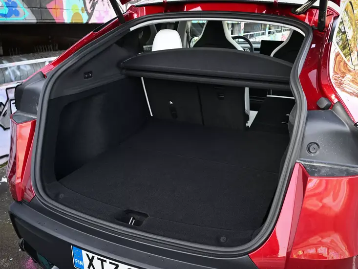 Tilankäyttö on Teslan vahvuus. Tavaratilat edessä ja takana ovat tässä hintaluokassa ylivertaiset ja perheelle iso myyntivaltti. Etutavaratila on yli 100 litraa ja takakontin alla on vielä lisää tilaa. Performance-versiossa etuistuimet ovat mallin parhaat, ja niihin on lisätty sähkösäädettävä istuinosan jatko. Takaistuimet ovat lapsille hyvät, mutta aikuisille reisituki jää heikoksi. Takaistuimet liikkuvat sähköisesti, mikä on mukava lisä.