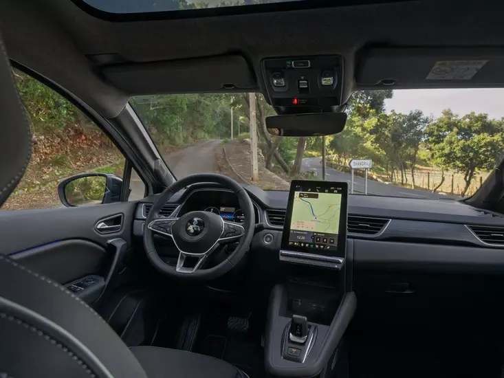 Ohjaamo on Renault-sukuinen, mikä ei ole huono asia. Kojelaudan materiaali muistuttaa sukelluspukua ja tuntuu miellyttävämmältä kuin kova muovi. Kiiltävää mustaa muovia on ilahduttavan vähän. Tietoviihdejärjestelmä on Google-pohjainen ja toimii hyvin. Lämmitystä hallitaan osittain perinteisillä painikkeilla, mikä on käytännöllistä.