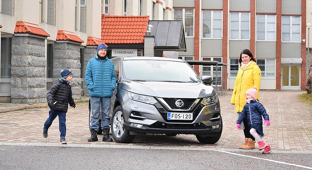 Kajaanilainen Immosen perhe kurvaa Nissan Qashqailla parkkipaikalle, ja seitsenvuotias Otso kertoo oitis, mikä on autossa parasta.